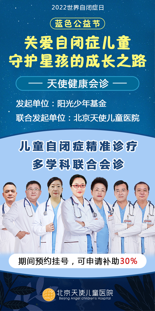为了迎接“世界自闭症日”,帮助自闭症孩子早日康复,减轻家庭负担,北京天使儿童医院联合阳光少年基金推出天使健康会诊活动,特邀知名儿科专家为自闭症患儿提供专项评估,制定个性化干预康复方案。