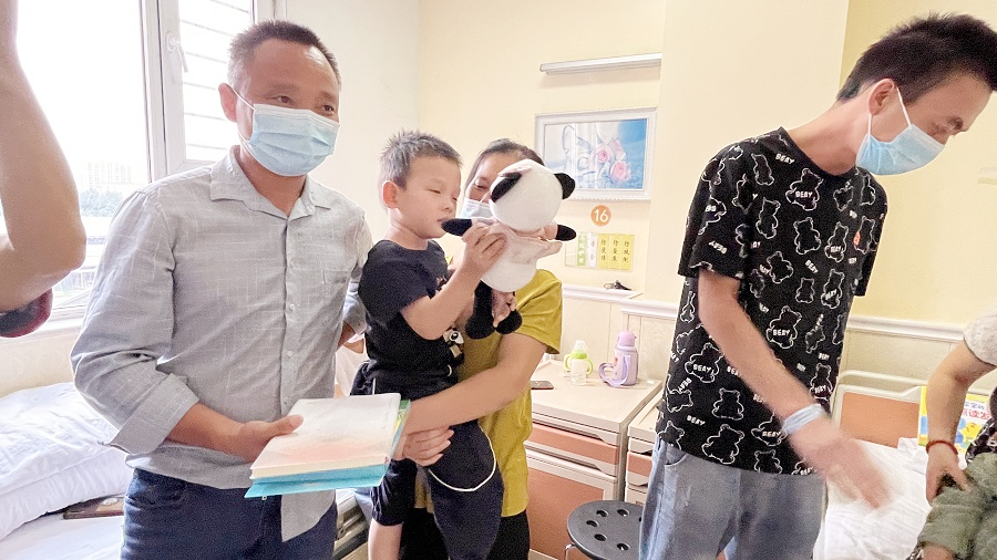 活动最后,儿童代表及公益志愿者代表一起前往病房探望患儿,给孩子们赠送新学期的学习礼物,并和患儿们亲切互动,同时祝愿小患者们都能早日康复、健康成长!